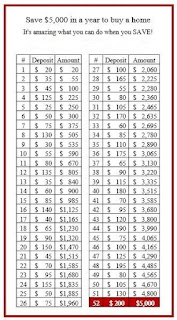 Here are some charts that you can use if you like, to start saving – or you can make your own. Some of these charts may not be realistic for some to achieve, but do what you are able to do. Make sure while you’re saving money, you are also paying your tithes and offerings : )