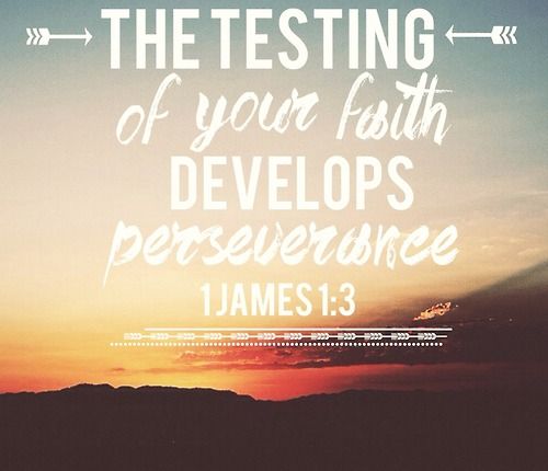 says “In all this, Job did not sin by charging God with wrongdoing.” (Job 1:21) Even when God allowed the devil to touch Job’s physical body, he did not curse his Lord. Throughout Scripture, the patriarchs and matriarchs were tested. Abraham had to leave his family and comfort zone, and sacrifice his only son. Esther’s courage was tried to petition the king for the salvation of the Jews. The Hebrew Boys and Daniel’s commitments to worship God were tested in the fiery furnace and the lion’s den. James said that we are to count, or consider it all joy when we face trials of many kinds, because the testing of our faith produces perseverance. Let perseverance finish its work so that you may be mature and complete, not lacking anything. (James 1:2-4) So endure the testing…and don’t quit!!